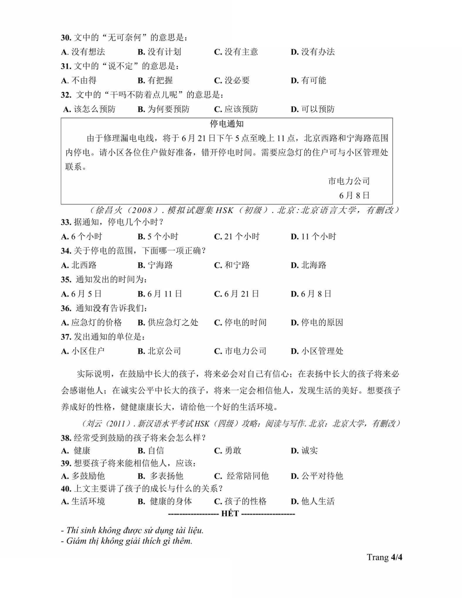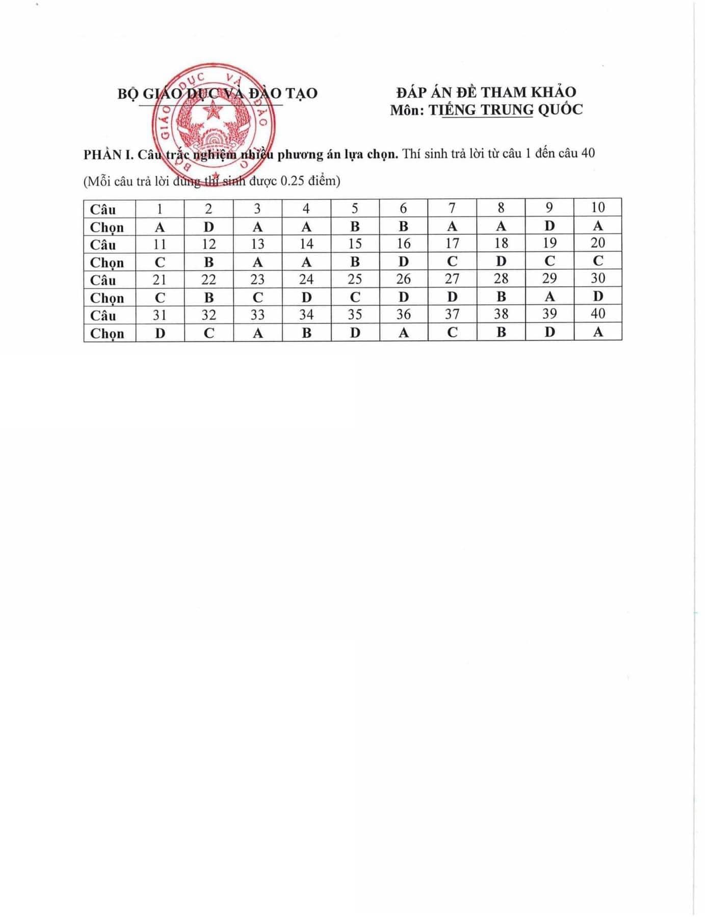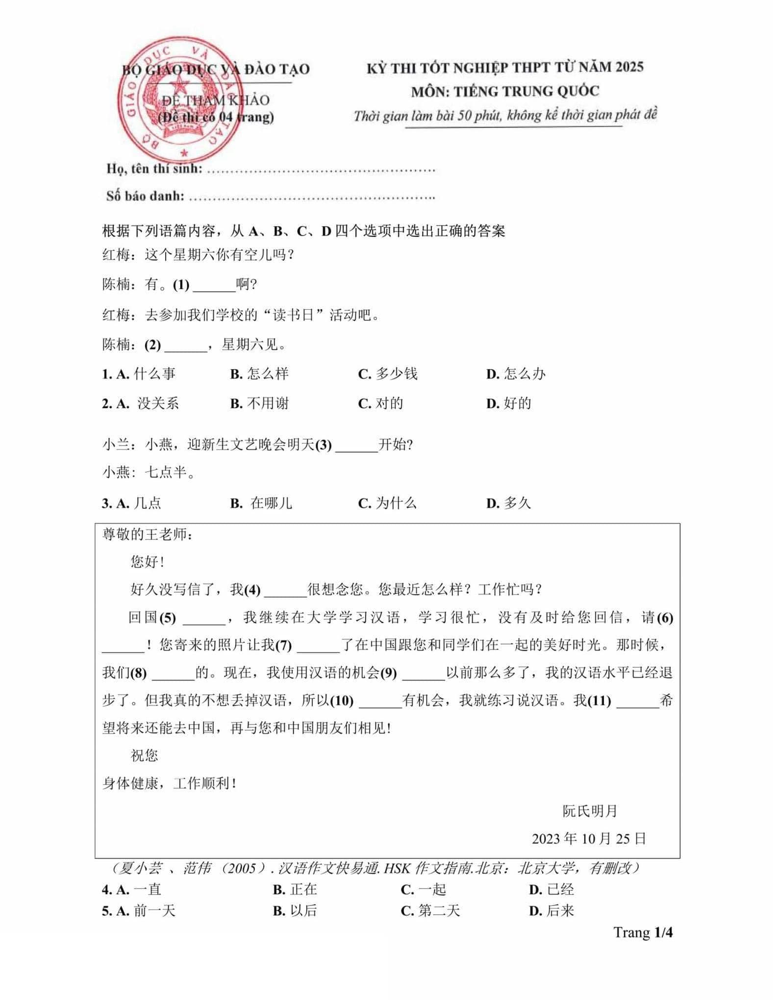 Đáp án Đề thi tham khảo tốt nghiệp THPT 2025 môn tiếng Trung