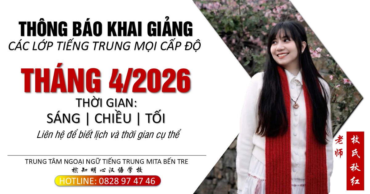 Lịch khai giảng các lớp học tiếng Trung Trung (tiếng Hoa) mới nhất tại các cơ sở của Trung tâm ngoại ngữ tiếng Trung Mita Bến Tre - Vĩnh Long cho học viên theo dõi để có thể dễ dàng sắp xếp phù hợp với lịch của bản thân mình về công việc, học tập, sinh hoạt, …
